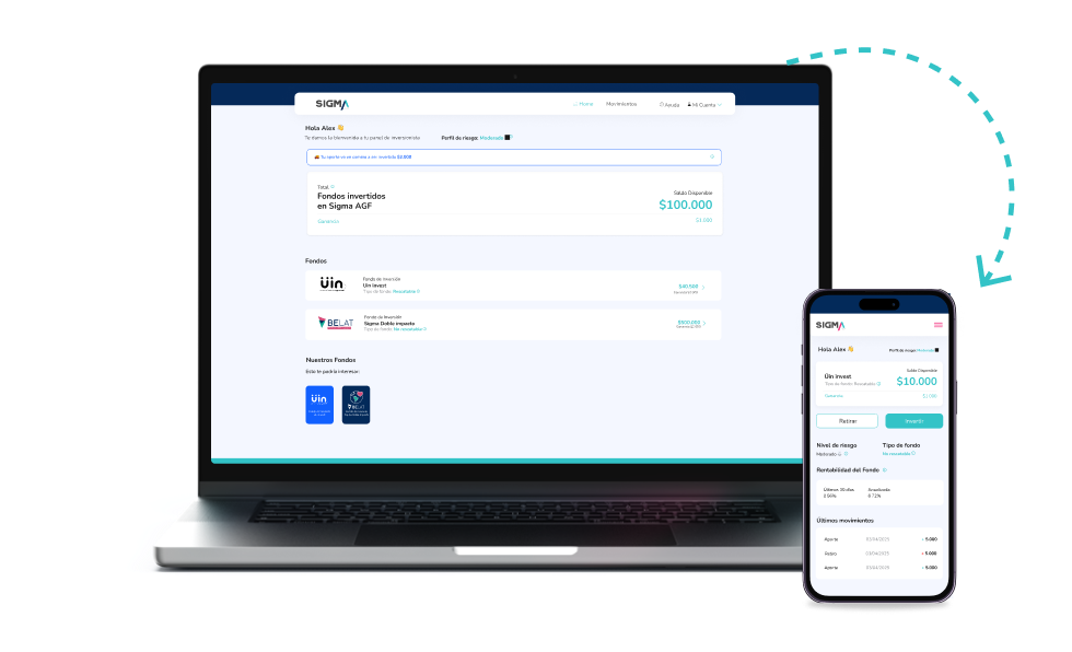 Ser parte de Sigma AGF nunca ha sido tan fácil. Regístrate en nuestra plataforma y en menos de 5 minutos podrás explorar nuestros fondos* y empezar a invertir.